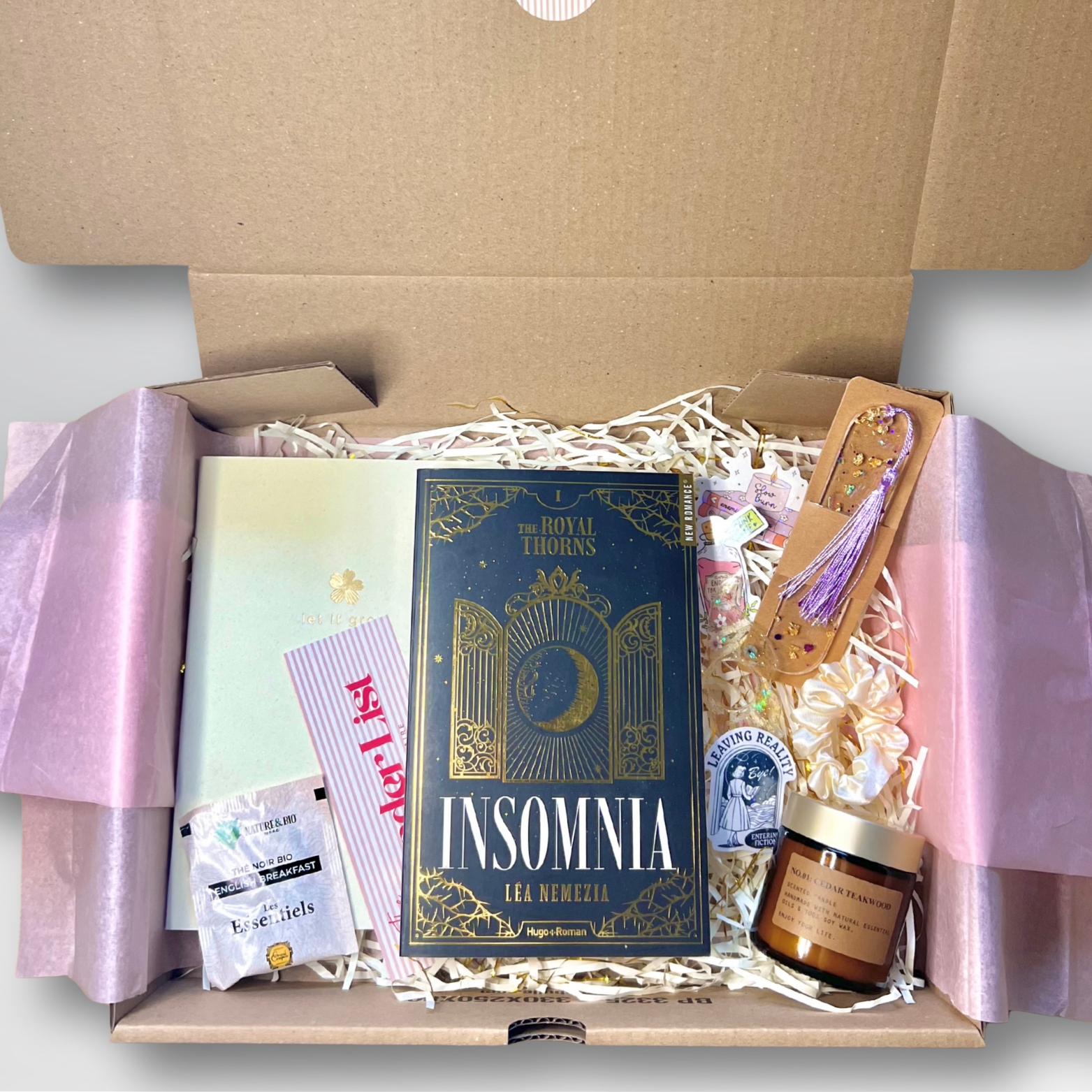 - Goodies : carnet de notes / de lecture, stylo, surligneur, chaussettes, lampe de lecture…