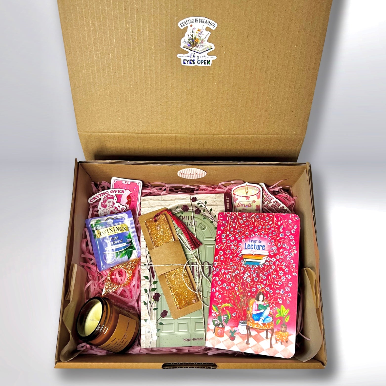 - Goodies : carnet de notes / de lecture, stylo, surligneur, chaussettes, lampe de lecture…