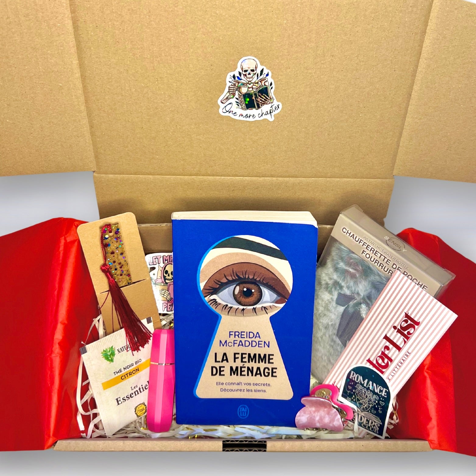 • Goodies : carnet de notes / de lecture, stylo, surligneur, chaussettes, lampe de lecture…