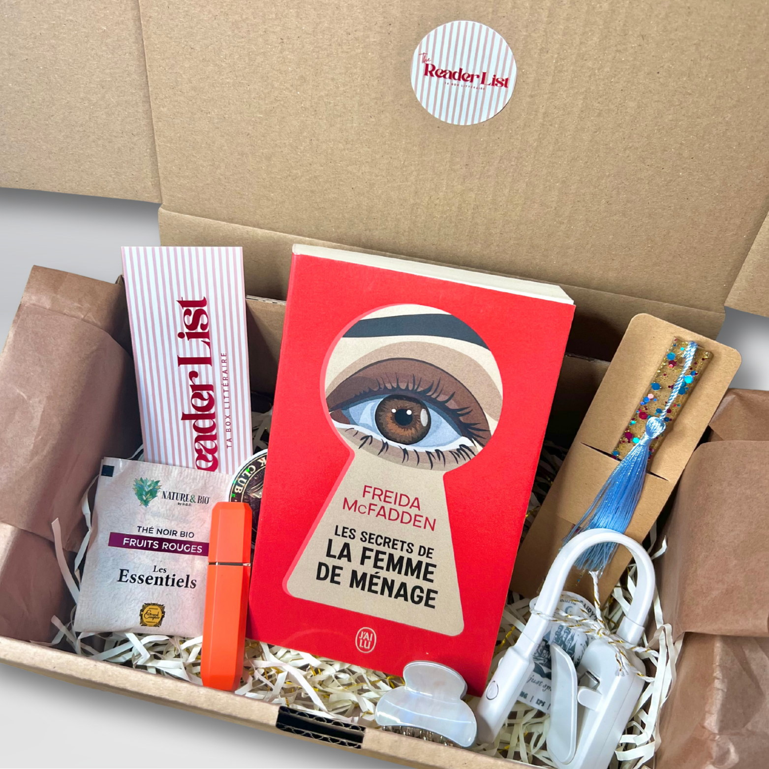 - Goodies : carnet de notes / de lecture, stylo, surligneur, chaussettes, lampe de lecture…